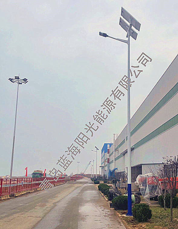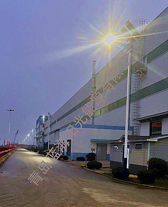 太陽(yáng)能LED路燈安裝完成,為該企業(yè)的交通、安防提供了必要的支持。