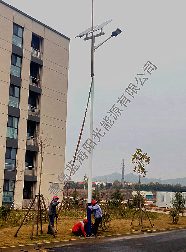 近日,由青島藍(lán)海陽(yáng)光能源有限公司設(shè)計(jì)、生產(chǎn)、安裝的青島市即墨區(qū)田橫街道某央企太陽(yáng)能LED路燈順得交付使用,該企業(yè)為滿(mǎn)足青島地區(qū)風(fēng)力發(fā)電提供高科技產(chǎn)品支持的國(guó)家重點(diǎn)新建企業(yè),為此廠區(qū)亮化要求各種參數(shù)高,產(chǎn)品全部采用高級(jí)別配件品牌,太陽(yáng)能LED路燈高度為10米,光伏組件為晶科硅片、鋰電池為億緯電芯柱、控制器為普天品牌、LED芯片為飛利浦品牌,燈桿采用熱鍍鋅噴塑,保證十年不會(huì)生銹,太陽(yáng)能路燈整體質(zhì)保五年。