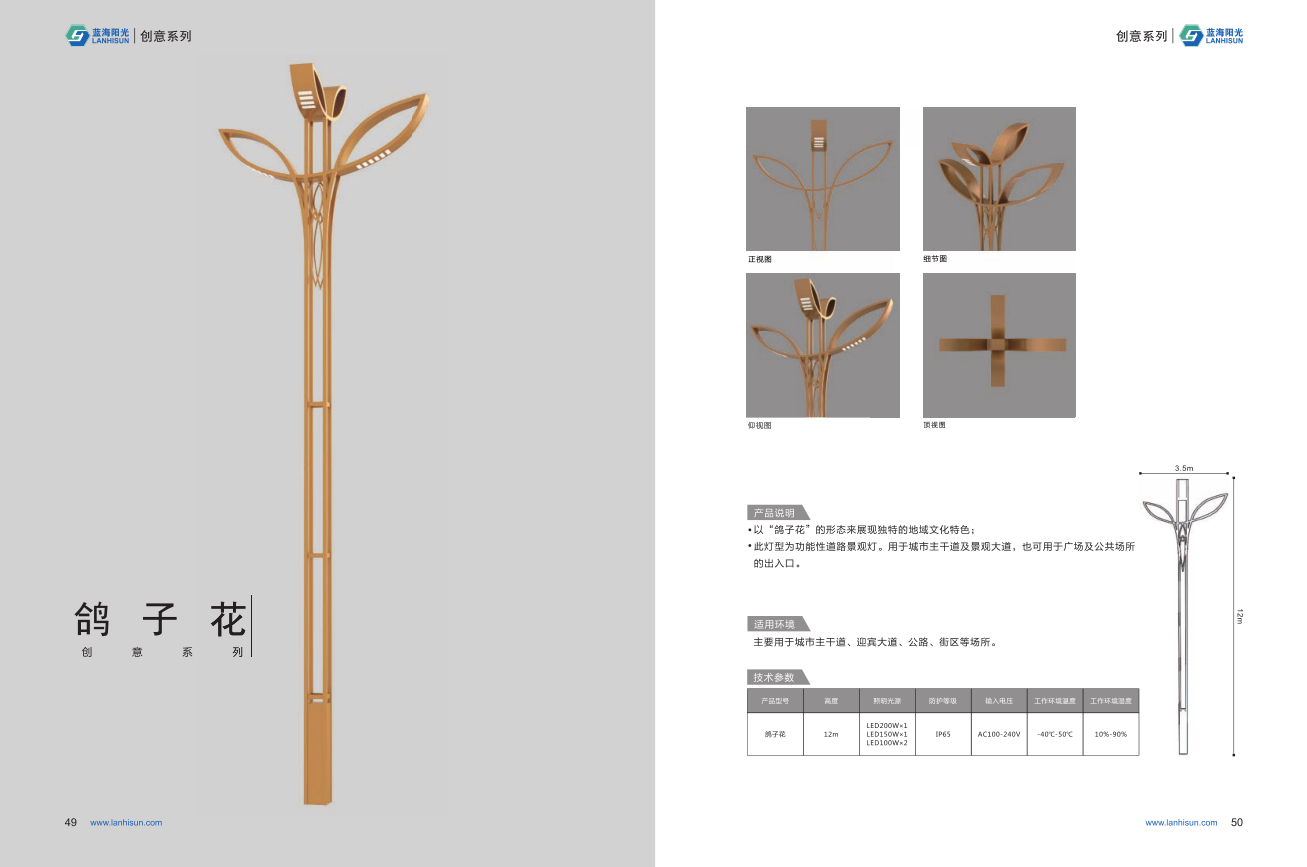 1、高度為6-16米; 2、花葉光源為4組LED光源,色溫2500-6500K,其余光源為LED裝飾光源,每個光源功率為30-60W; 3、LED驅(qū)動電源壽命可達五年; 4、整體熱鍍鋅噴塑,保證燈桿15年不生銹; 5、可以根據(jù)使用地區(qū)的地域文化、產(chǎn)業(yè)特點等進行文化定制;