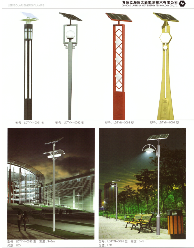 ? ? ? ?青島藍海陽光能源有限公司是一家集生產、設計、銷售、施工、售后為一體的服務性戶外照明公司;產品有:景觀燈、庭院燈、道路燈、玉蘭燈、中華燈、廣場燈、太陽能路燈、非標定制燈型、草坪燈、柱頭...,公司從事戶外照明亮化產品十五載,落地項目幾百個,設計專項強、產品質量可靠,具有專業的安裝施工隊伍,是高新技術企業、專